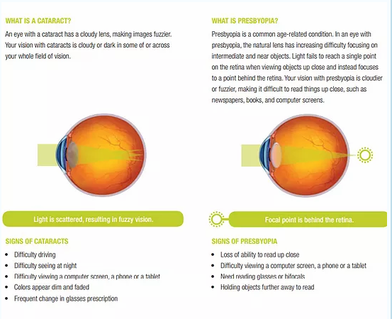 When cataract is removed, a lens is placed inside of the eye. It is a great eye surgery, because patients who had been nearsighted or farsighted can now be made to have excellent vision without glasses.